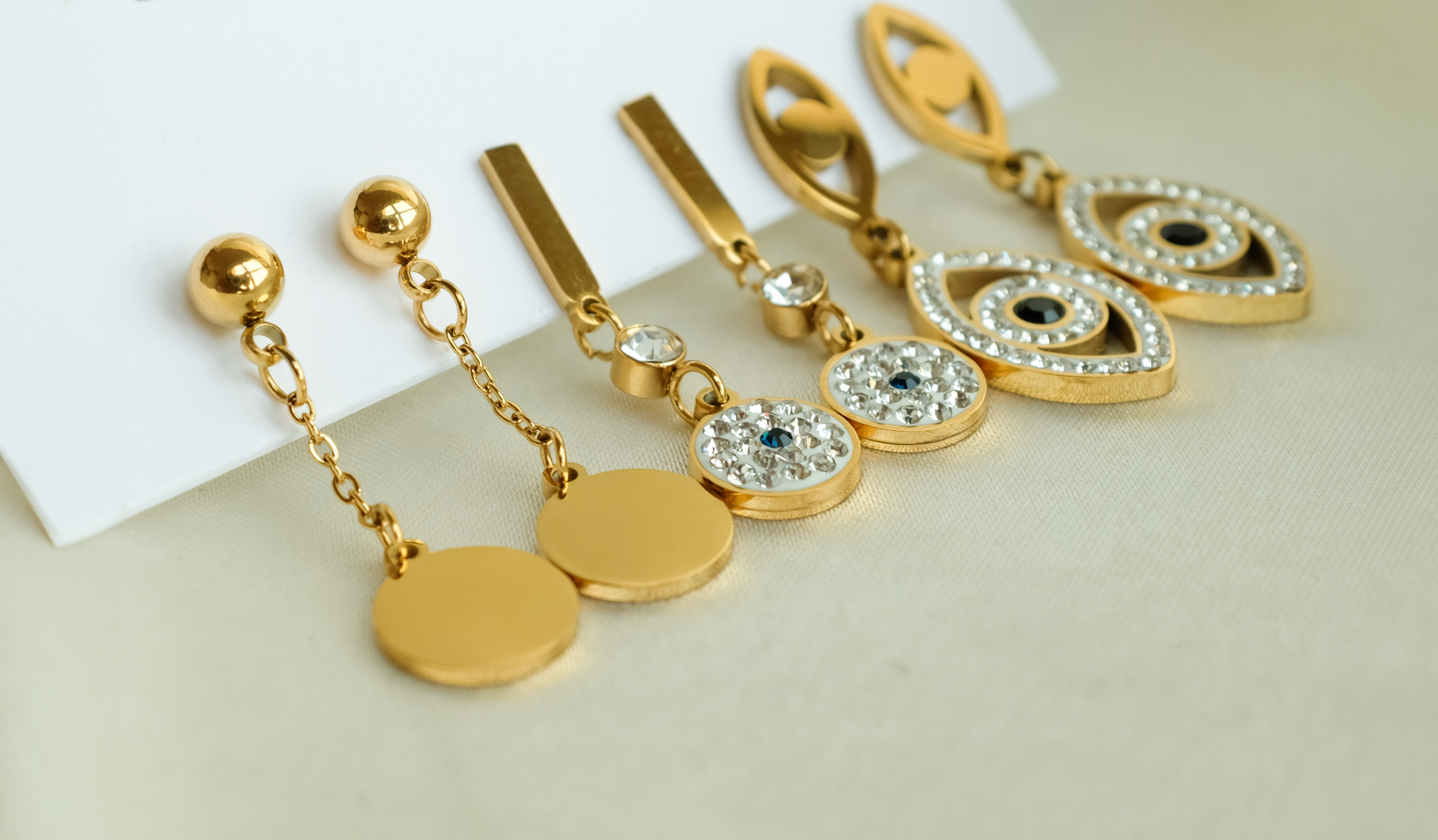 Earrings - Evil Eye Set of 3 - Gold Tone