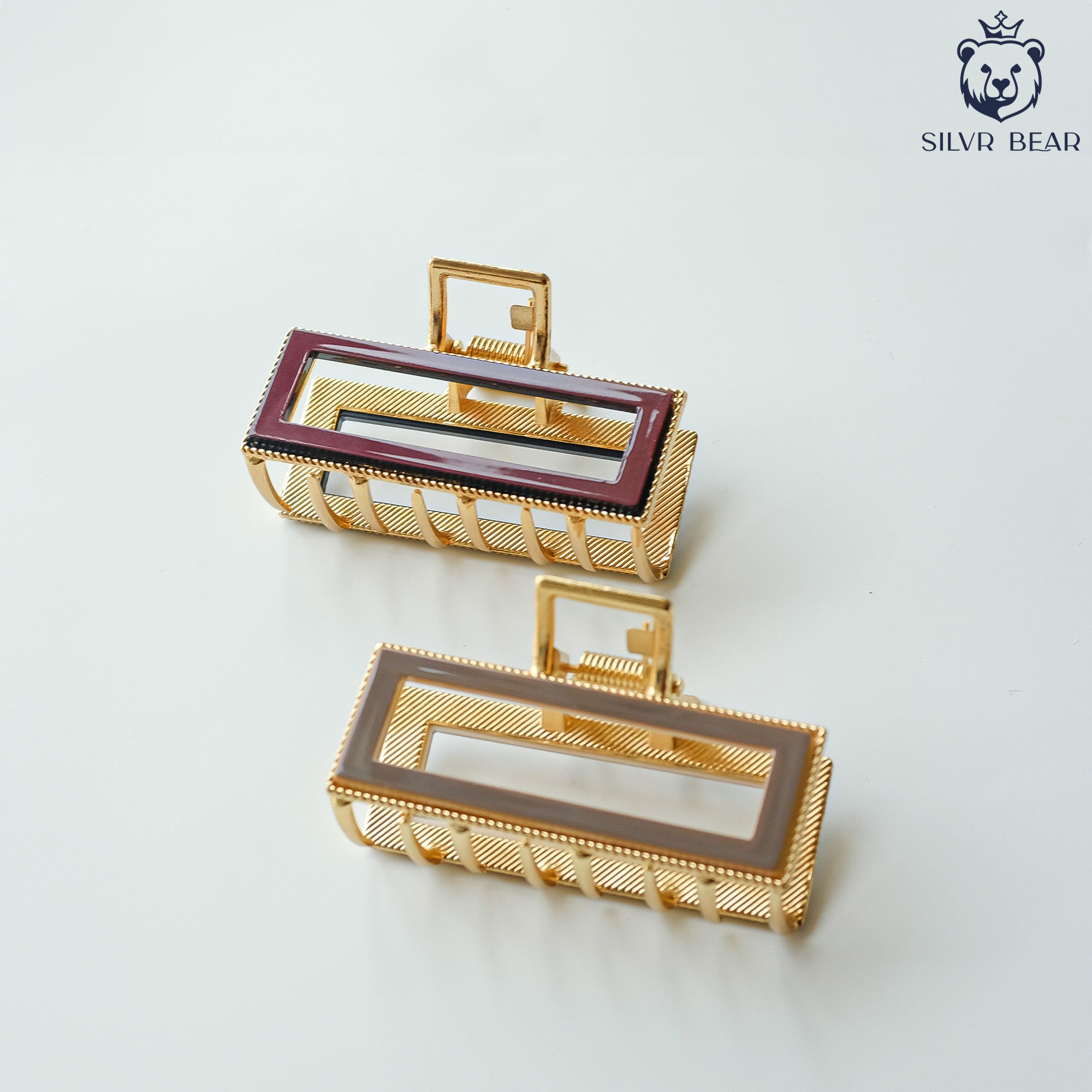 Metal Claw Clips - Golden Hair Clutchers - Maroon Taupe