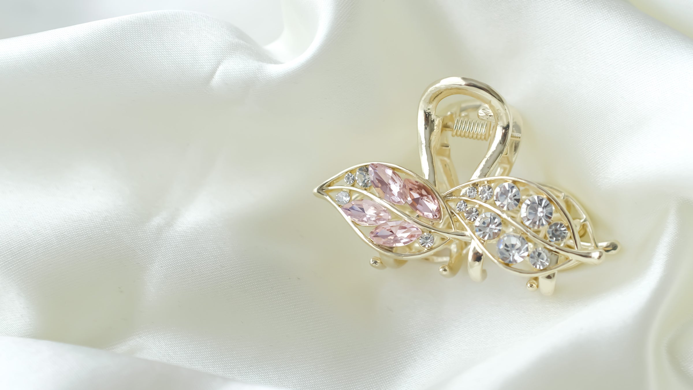 Jewelry Claw Clip: This small sized golden claw clip in a cute leaf shape with diamond accents will help you elevate your hairstyle for any special event effortlessly.