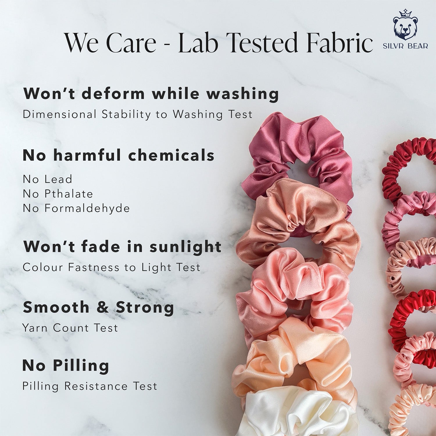 I use these silky soft scrunchies to tie my daughter's hair. This is the only brand I trust as their fabric is lab tested. Knowing that extra care has gone into choosing good materials lets me be worry free. Also, these are the only scrunchies that she lets me do without crying. Thanks for this amazing product