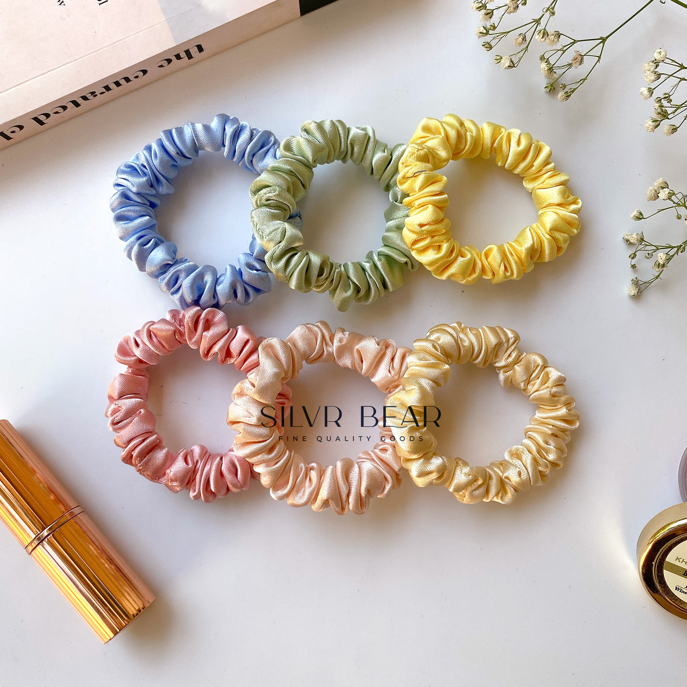 Soft on hair & wrist These hair ties are made using silk-like pure satin fabric and comfortable elastic. Smooth and easy to slide out and thus prevents hair breakage and cares for your hair. You can comfortably wear it on your wrist too.