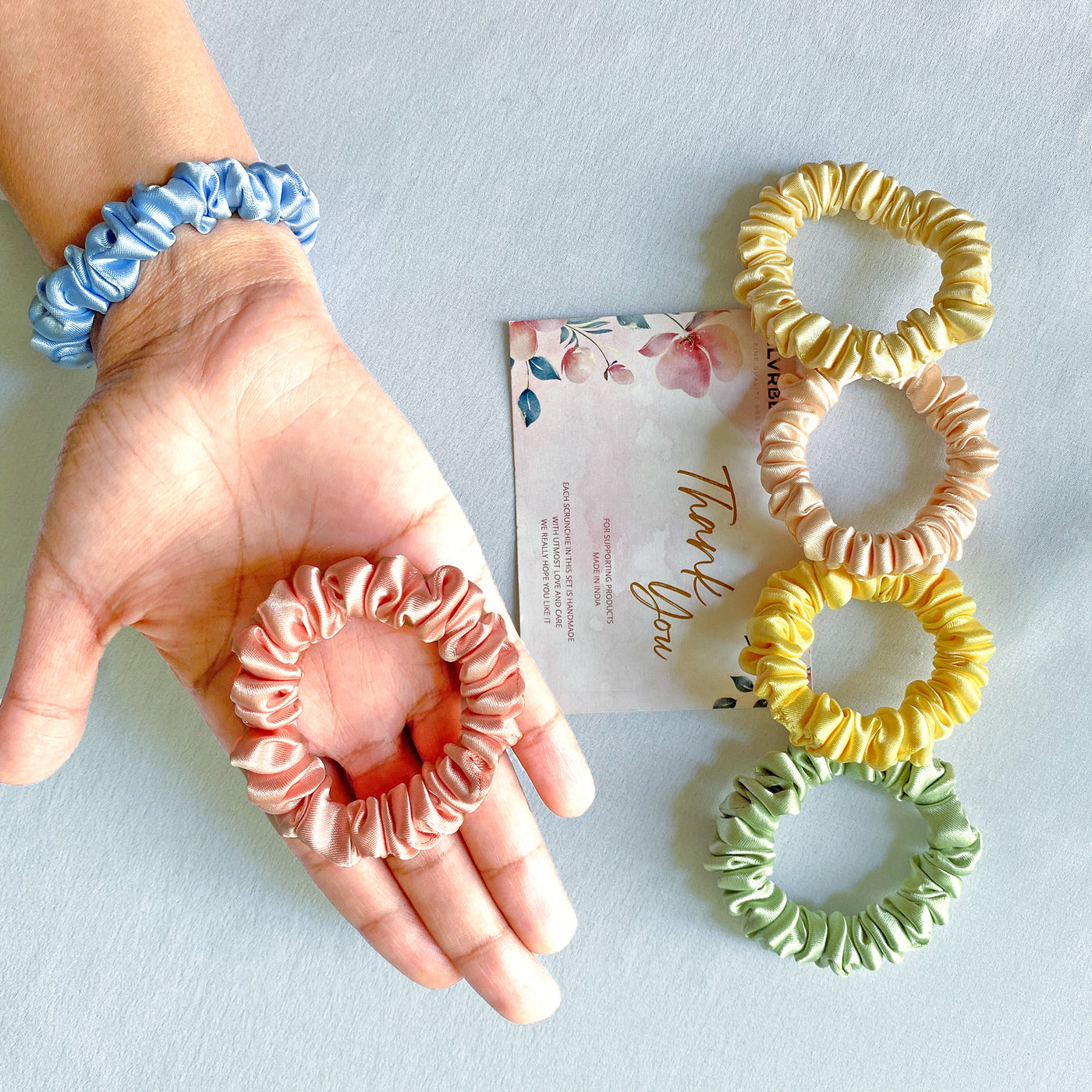 Proudly made in India These scrunchies are 100% handmade with love and pride in India.