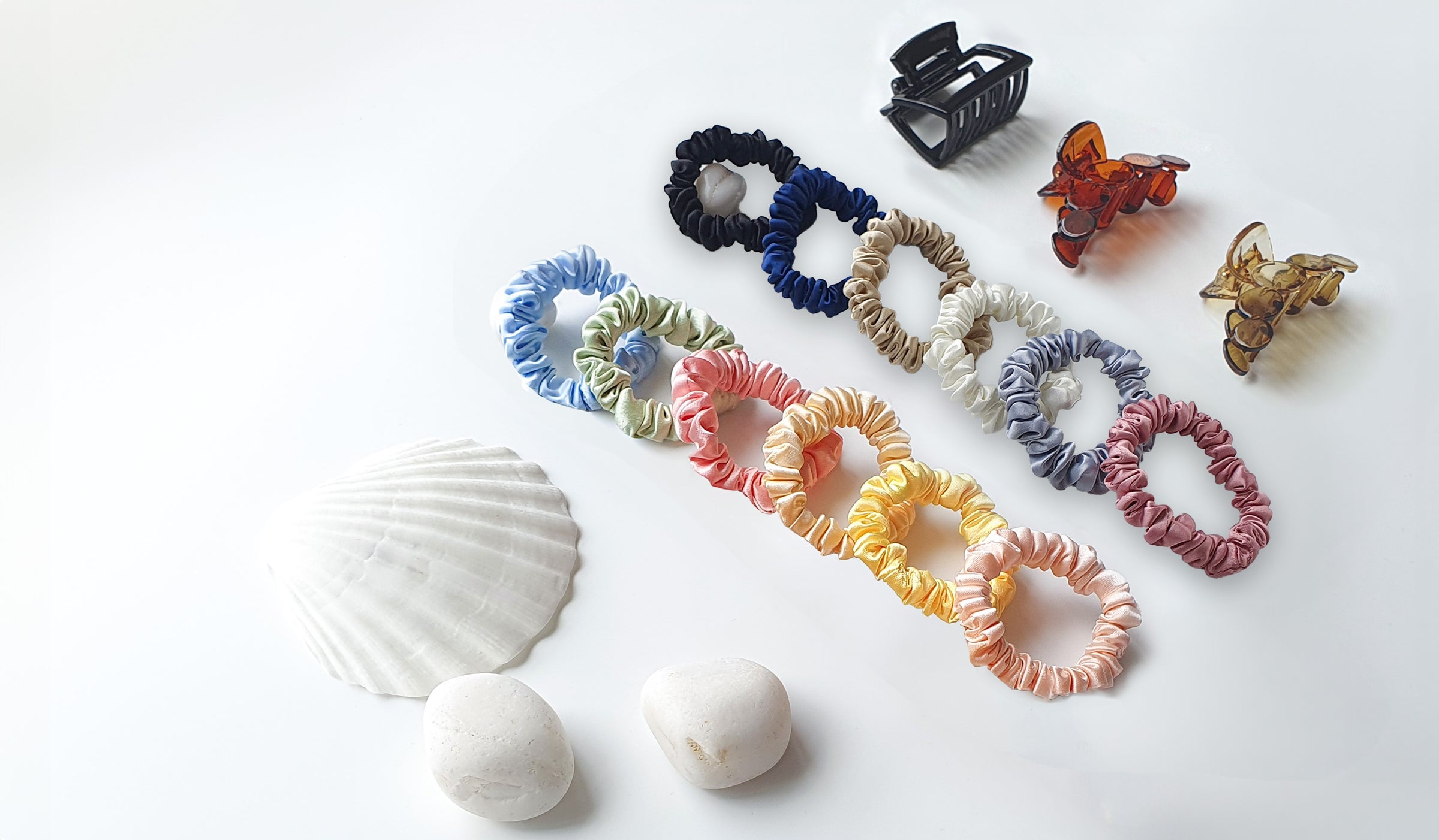 6 Pastel Skinny Scrunchies + 6 Earthy Skinny Scrunchies + 3 Unbreakable Claw Clips